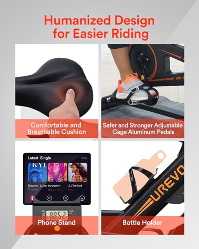 Smooth and Silent Ride: Equipped with a belt drive system and a 22LBS flywheel, the UREVO bike ensures a smoother and quieter ride compared to traditional chain-driven bikes. Ideal for early mornings or late nights—no more worrying about disturbing your family or neighbours