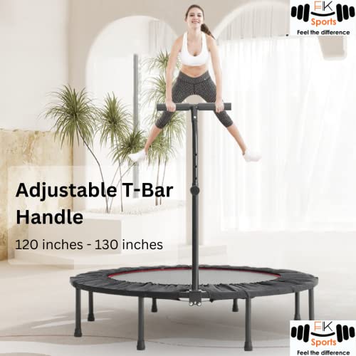 FK Sports Foldable Fitness Mini Trampoline Rebounder, 48″ and 40″ Foldable Mini Trampoline with T or U Bar Handle, Round Mini Fitness indoor Trampoline