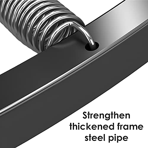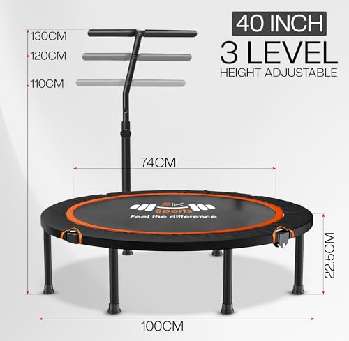 DURABLE MATERIAL – A foldable mini trampoline for children and adults The frames of this trampoline are composed of steel with heavy-duty construction. The waterproof bungee mat is attached to the frame using steel springs that greatly increase the stability. The T bar handle is adjustable with foam and sturdy legs with rubber sleeves making the rebounder non-slip and secure for comfortable grip and balance.
