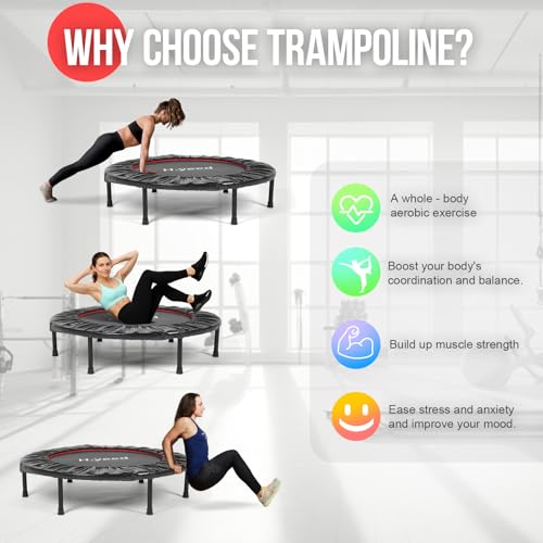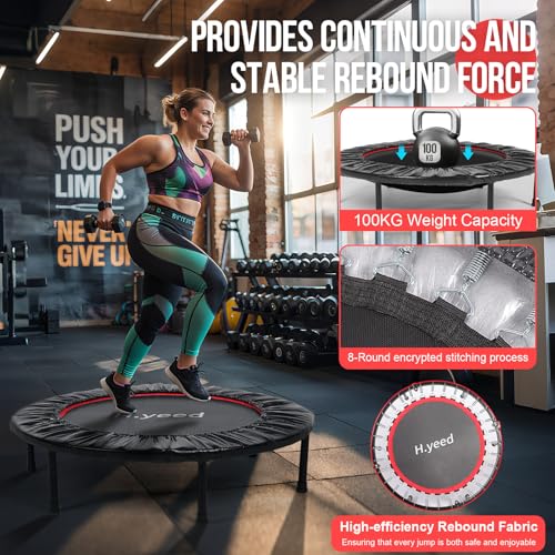 H.yeed 38″ Foldable Fitness Trampoline, Mini Adult Trampoline for Indoor Outdoor Jumping Training Exercise Trampolines for Adults Teens, Max Load 100KG