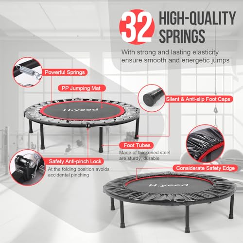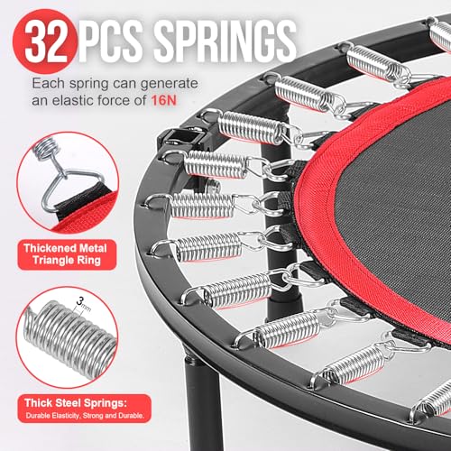 【Smooth & Quiet Bounce】 Experience smooth, low-impact workouts with 32 high-tension springs that distribute weight evenly, ensuring a stable and quiet bounce. Perfect for joint-friendly cardio sessions without disturbing others.