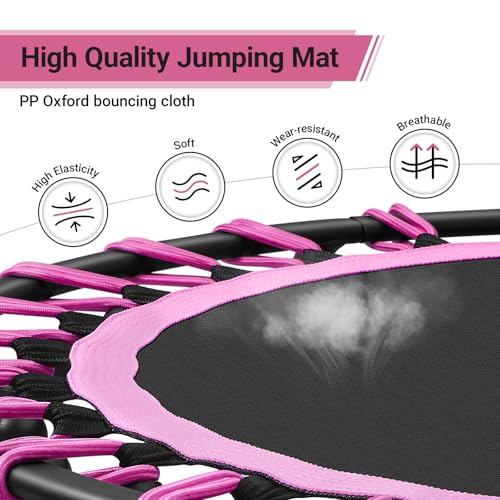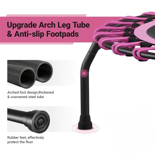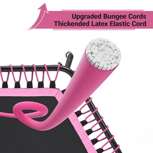 【Upgraded Bungee Cords】This mini trampoline adopts excellent elastic rope design, 30 thickened latex elastic cord with a diameter of 8.6mm, reducing noise in maximum extent and providing comfortable bouncing experience