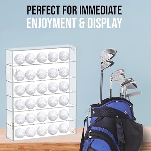 Clear Acrylic Golf Ball Display Stand, 6-Tier Display Rack with Door, Golf Ball Holder Showcase Display Cabinet for 30 Balls