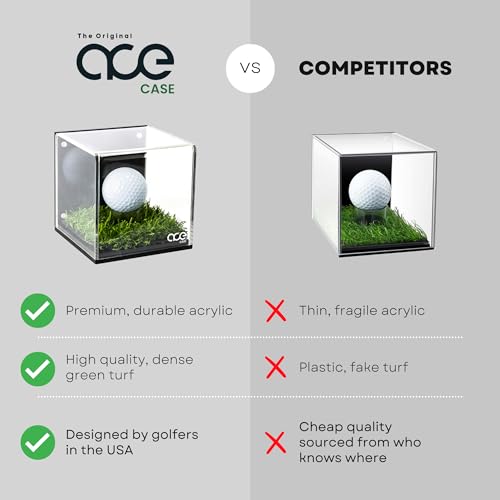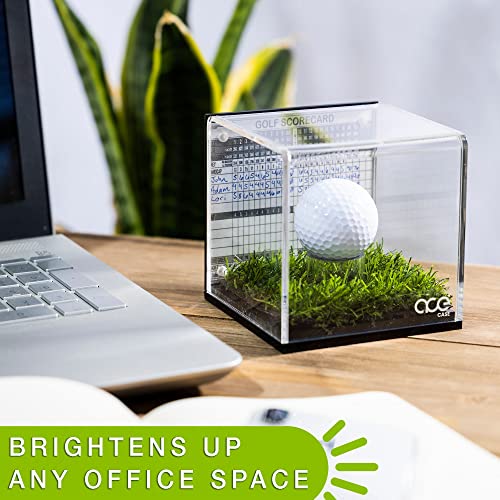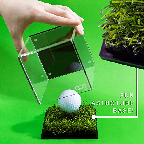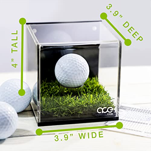 Golf Ball Display Case with Turf and Magnetic Card/Picture Slot – Acrylic Glass Hole in One Golf Ball Display Case – Golf Ball Display for Enthusiasts