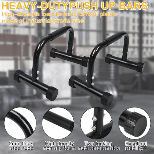 💪【HIGH STRENGTH LOAD BEARING PARALLETTES】Manufactured from industrial-grade steel,these heavy-duty immersion push up handles are ruggedly designed for top-notch durability and uncompromising performance.The push up bar is meticulously welded and designed with non-slip feet to ensure maximum safety during your workout.Whether you want to use them as push-ups or gymnastic equipment,the press up handles are perfect for you.