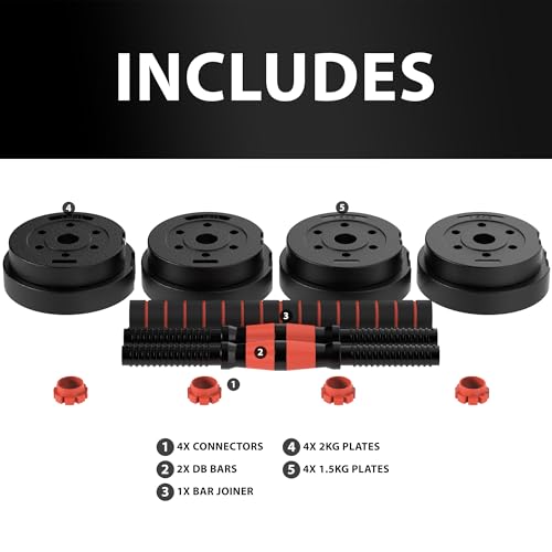 ZENO Dumbbells Set | Adjustable Dumbbells | Gym Weights | Includes Barbell | Great for Bicep & Tricep Training