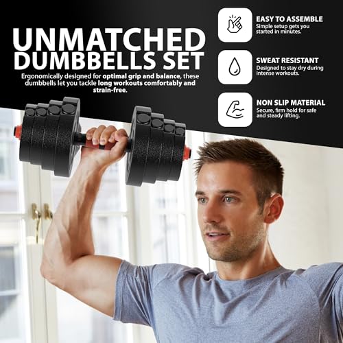 ERGONOMIC & COMFORTABLE – Ergonomically designed, these dumbbells fit comfortably in your hands, reducing fatigue and enhancing your grip strength. The smooth, non-slip handles ensure a secure hold, even during the most intense workouts, allowing you to focus solely on your fitness goals.