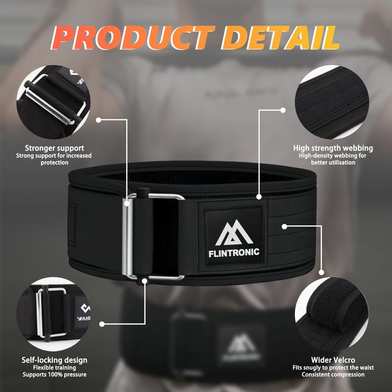 Flintronic Self-Locking Weight Lifting Belt, Weight Lifting Belt AUTO LOCK, 4”Bodybuilding Workout Belt with Sweat Bands, Powerlifting Belt Back Support, Deadlift Training Belt for Men Women